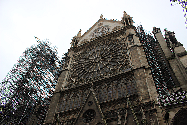 Feia cinc anys i mig, concretament el quinze d'abril del 2.019, un espectacular incendi que afectà la coberta de fusta del segle XIII, l'agulla neogòtica, les voltes de creueria del creuer i el transsepte i l'estabilitat dels arcbotants laterals. Afortunadament el cent seixanta bombers que van participar en les tasques d'extinció aconseguiren apagar el foc i salvar la catedral parisenca.